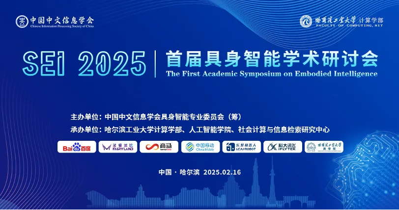 2025年2月16日,中国中文信息学会具身智能专委会(筹)成立会议暨首届具身智能学术研讨会(SEI 2025)在哈尔滨工业大学隆重举行!本次大会由中国中文信息学会具身智能专业委员会(筹)主办,哈尔滨工业大学计算学部、人工智能学院、社会计算与信息检索研究中心承办,全面聚焦具身智能领域的前沿探索与技术突破。大会内容丰富,亮点频现,多位专家学者及企业具身智能技术负责人做了精彩的报告。